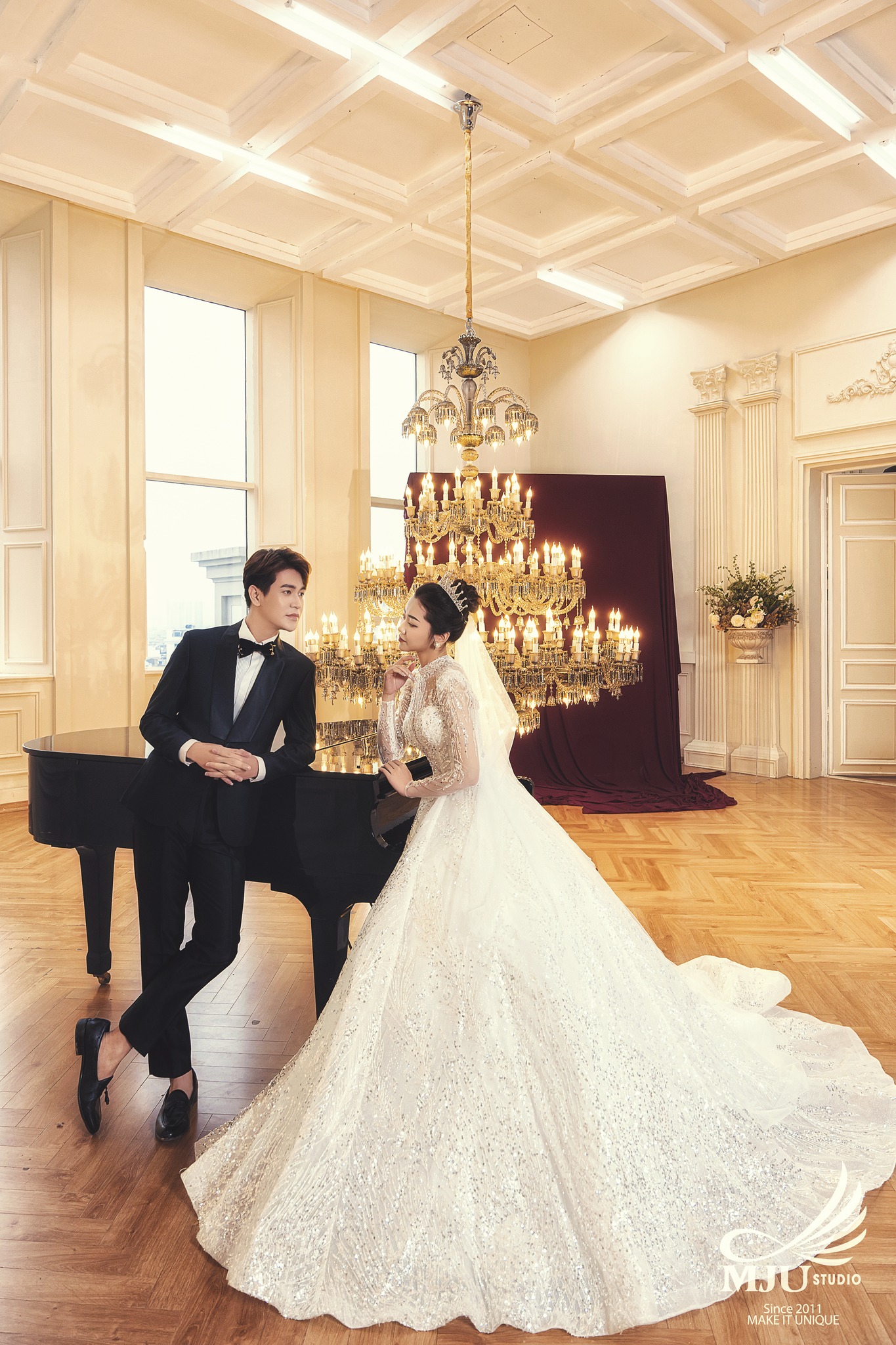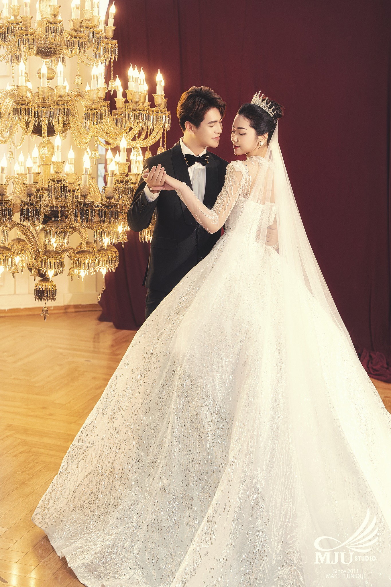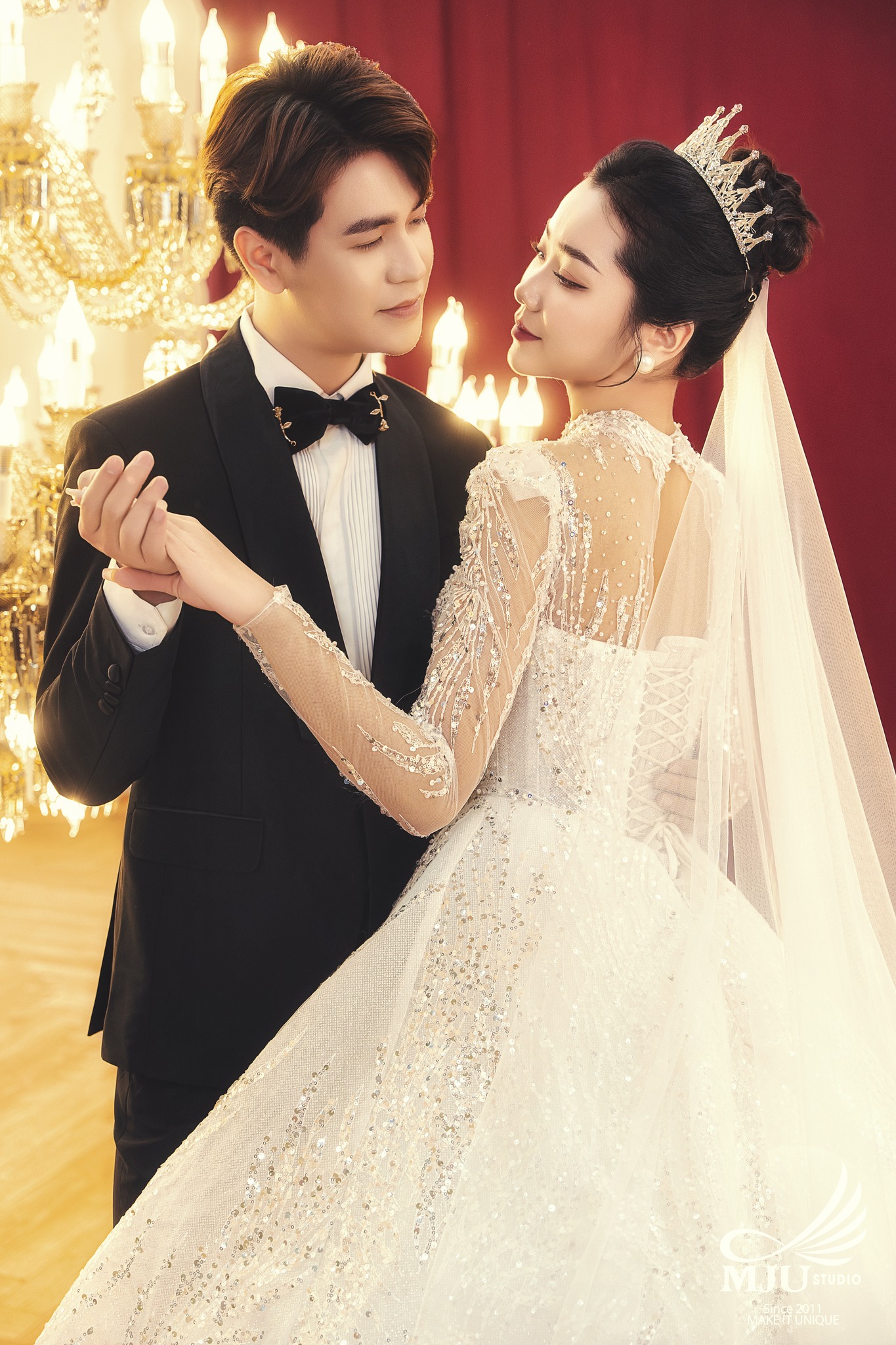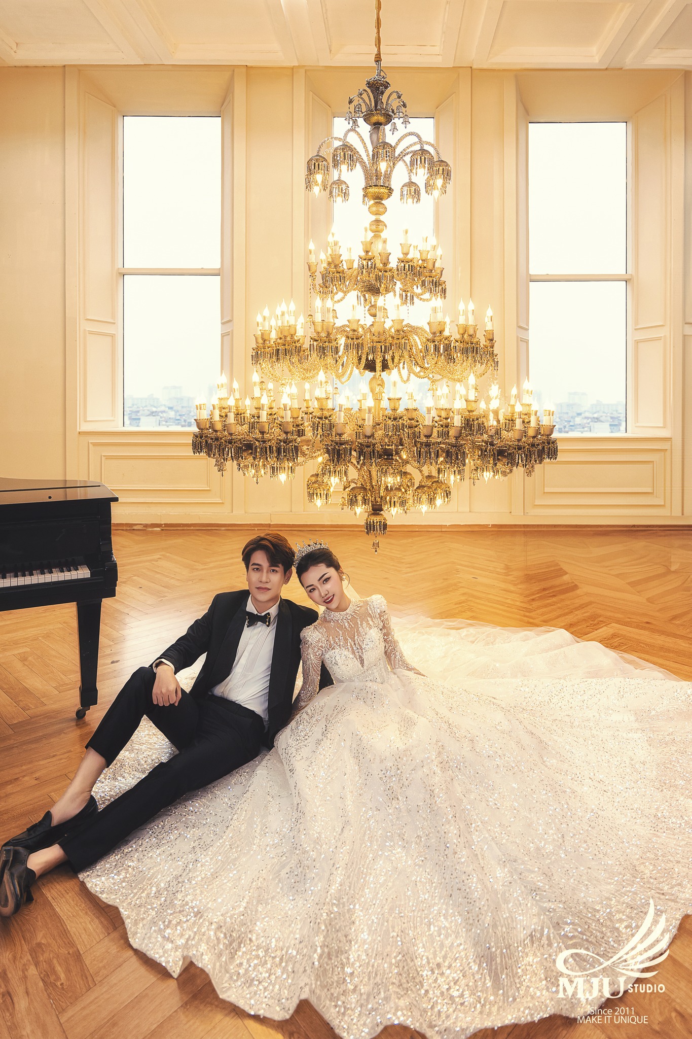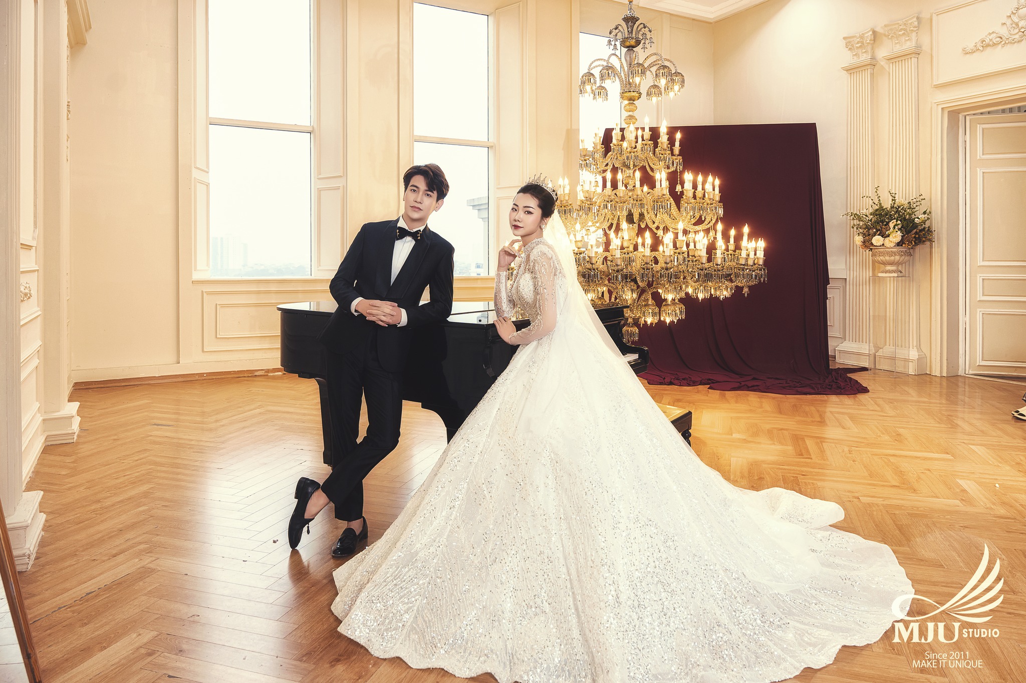 #Mjustudio Với bối cảnh rộng, điểm nhấn là chiếc đèn chùm cổ điển sang trọng làm nền cho cô dâu chú rể, làm nổi bật cặp đôi giữa một không gian màu sắc ấm và không nhiều chi tiết. Các NAG của chúng tôi đã vận dụng khéo léo các góc chụp và ánh sáng đến từ chiếc đèn chùm để tạo ra những bức ảnh lung linh nhất, tôn nên sự lãng mạn cổ điển cho cặp đôi.