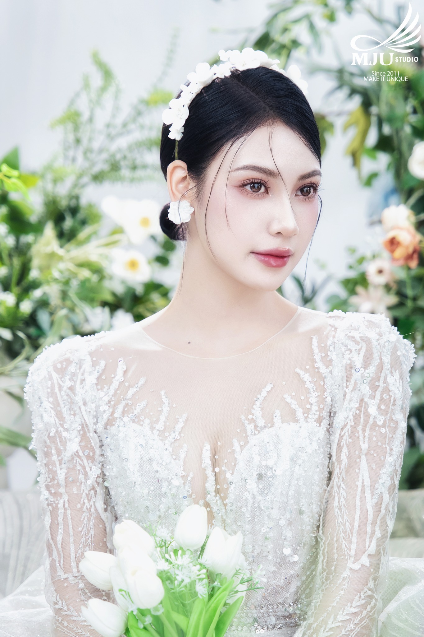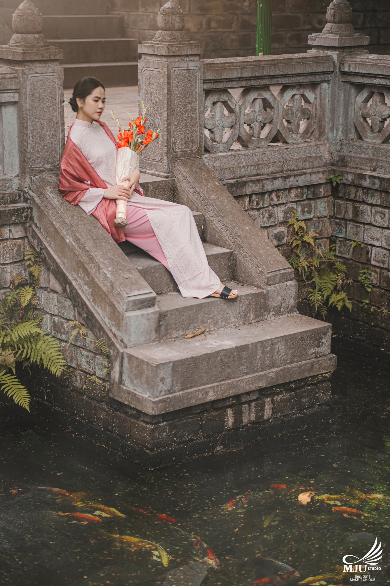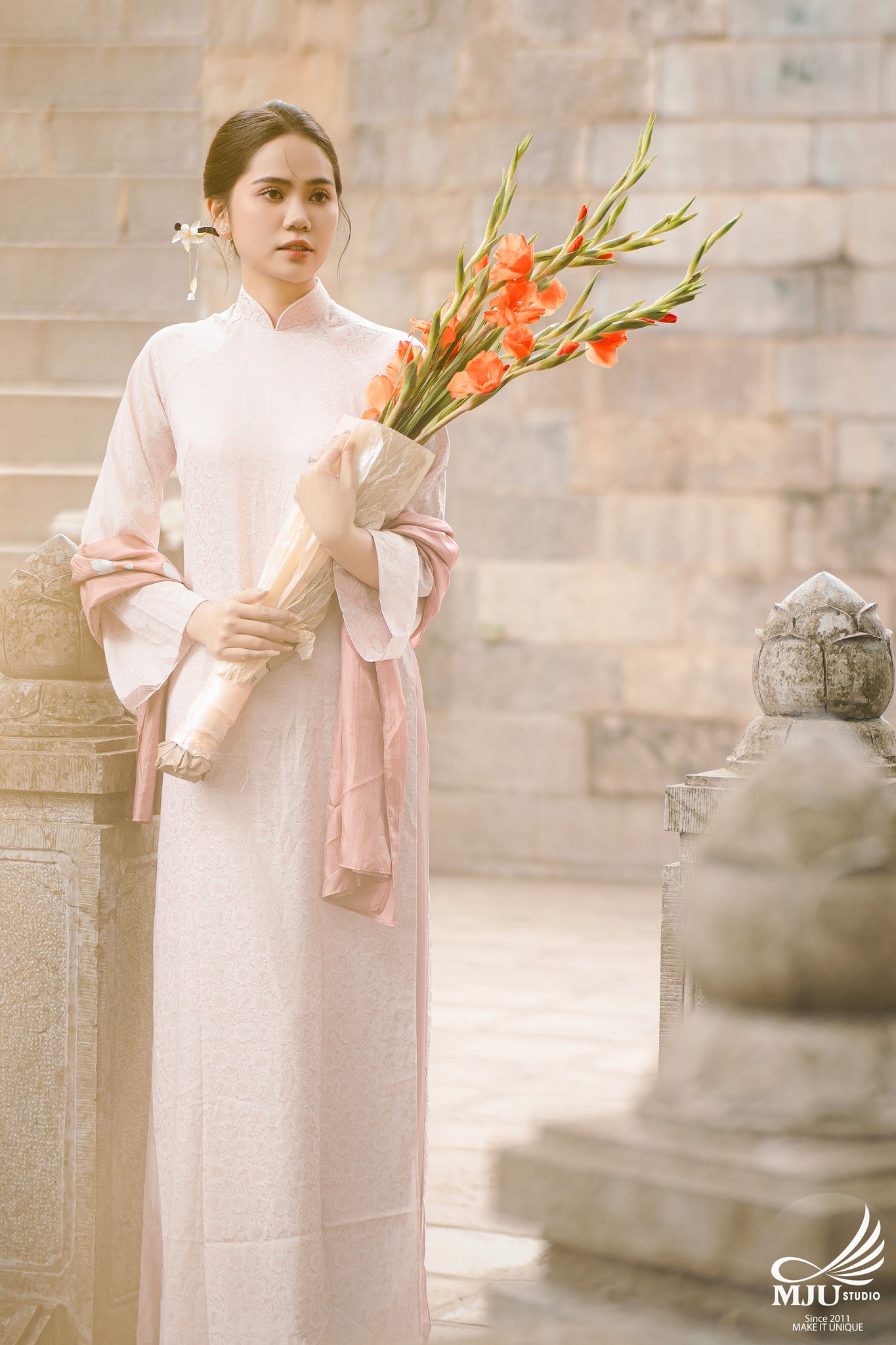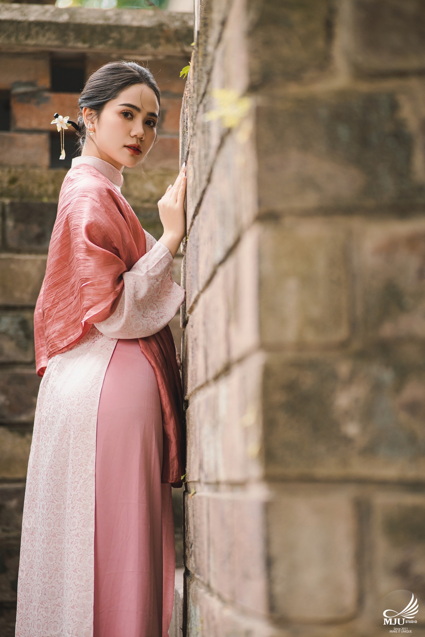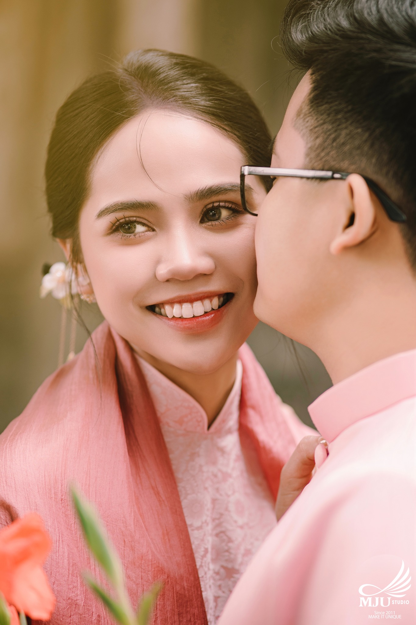 MJU Studio đã gợi ý một concept rất dung dị với tạo hình áo dài thụng cổ phục đang rất được ưa chuộng năm nay, ghi hình tại một địa điểm đậm chất Hà Nội, dưới tạo hình của Chuyên viên trang điểm MJU Studio, cô dâu Huyền đẹp tinh khôi, trong góc máy của Nhiếp ảnh gia MJU studio, cô dâu chú rể như hoà mình trong hương Vị Tết cổ truyền xưa, nhưng vẫn sang trọng, tinh tế.