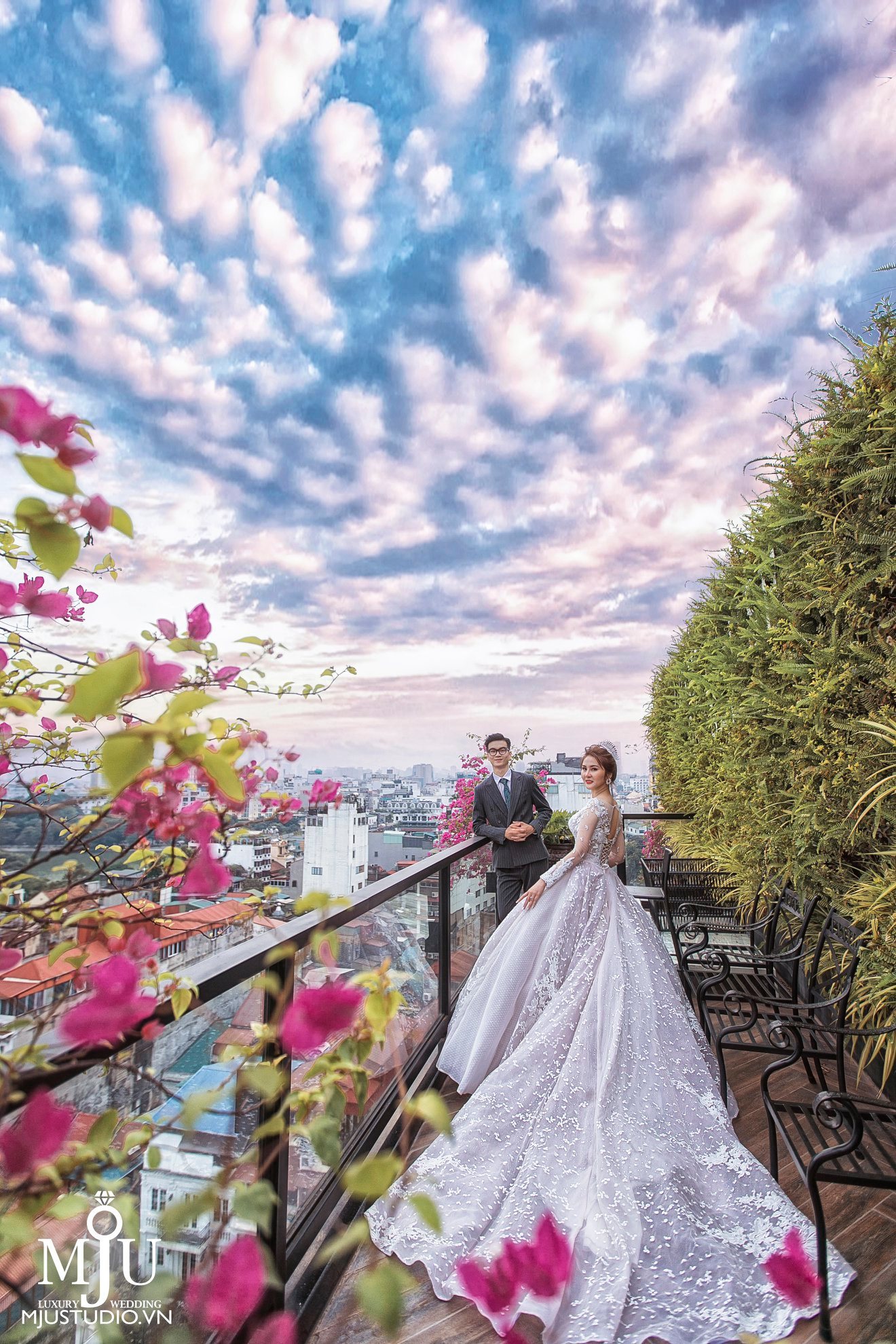 Bối cảnh hoành tráng, váy cưới lộng lẫy cùng những góc máy lấy toàn cảnh, bộ ảnh cưới của cô dâu chú rể Thành Nhân - Quỳnh Anh được ekip MJUstudio thực hiện tại Khách sạn 4 sao cùng Skybar toạ lạc trên tầng 10 lấy view toàn thành phố.