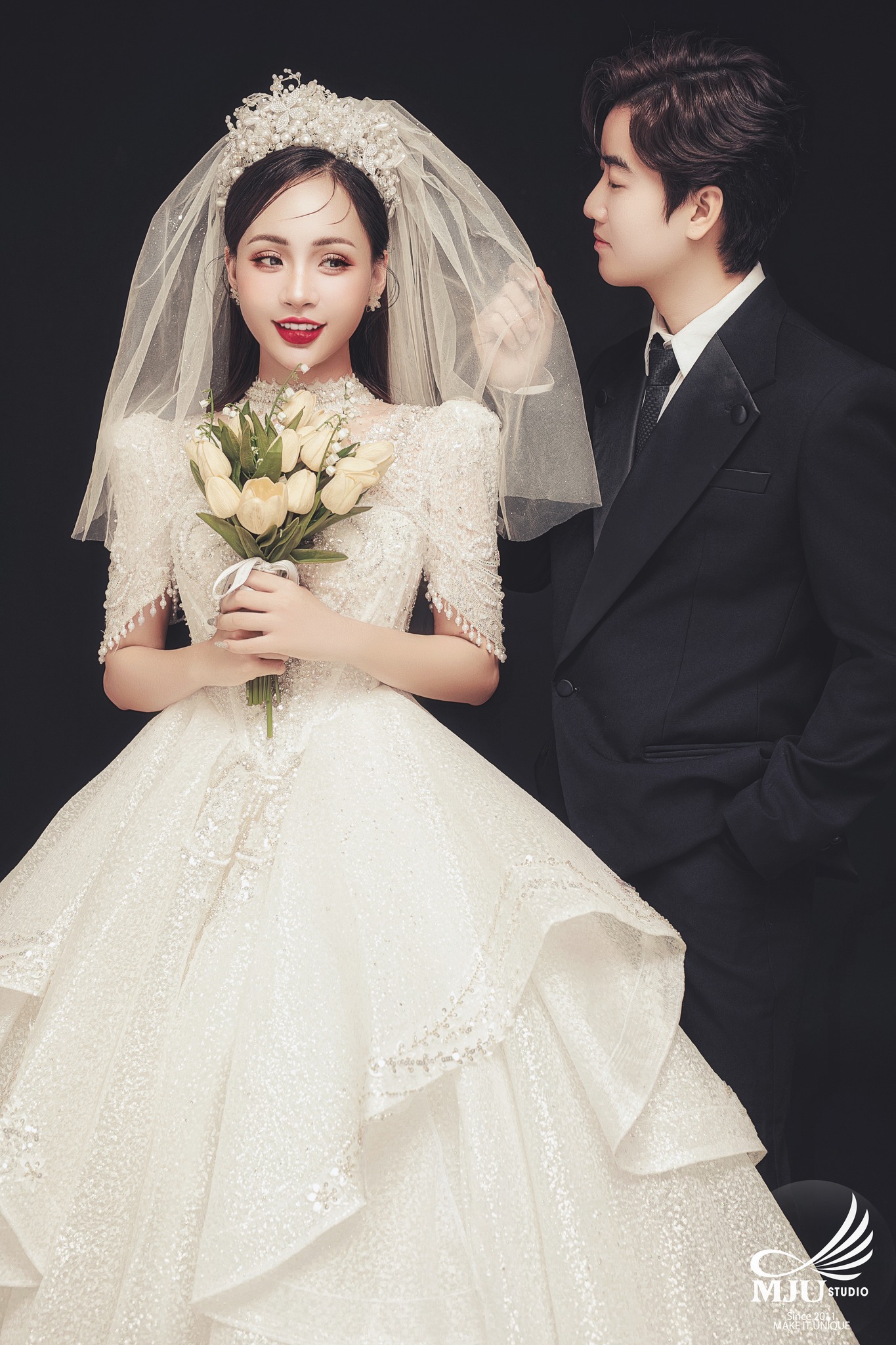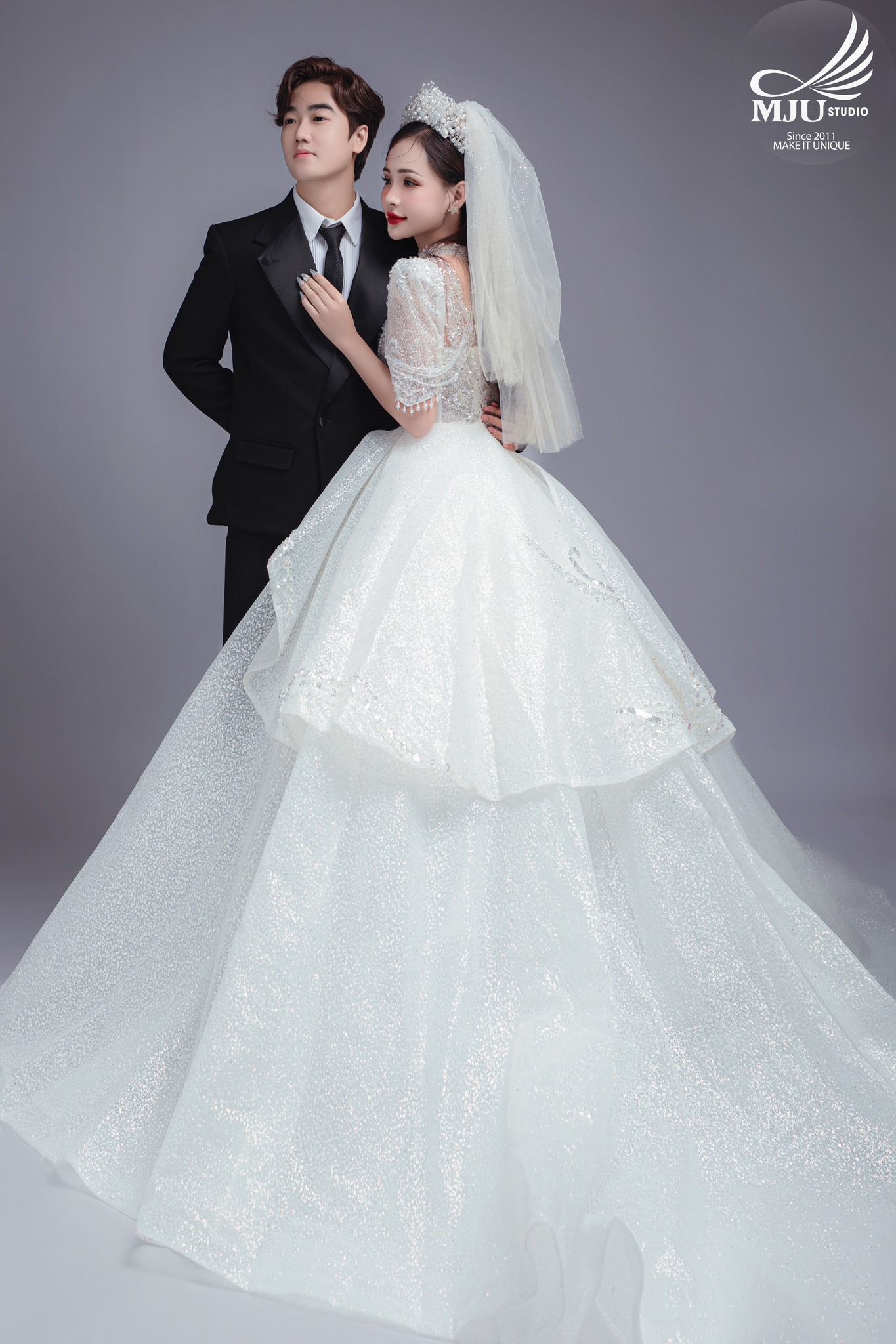 Mju Studio là Studio ảnh cưới nghệ thuật đầu tiên có nhãn hiệu váy cưới thiết kế cao cấp độc quyền Fairytale Bridal, Trưởng phòng thiết kế được tu nghiệp tại trường thiết kế danh tiếng Istituto Marangoni của Ý, xưởng sản xuất quy tụ những thợ thủ công tay nghề trên 10 năm với số lượng váy cưới mới và nhiều mẫu mã tinh tế, cô dâu thoả sức chọn lựa.
