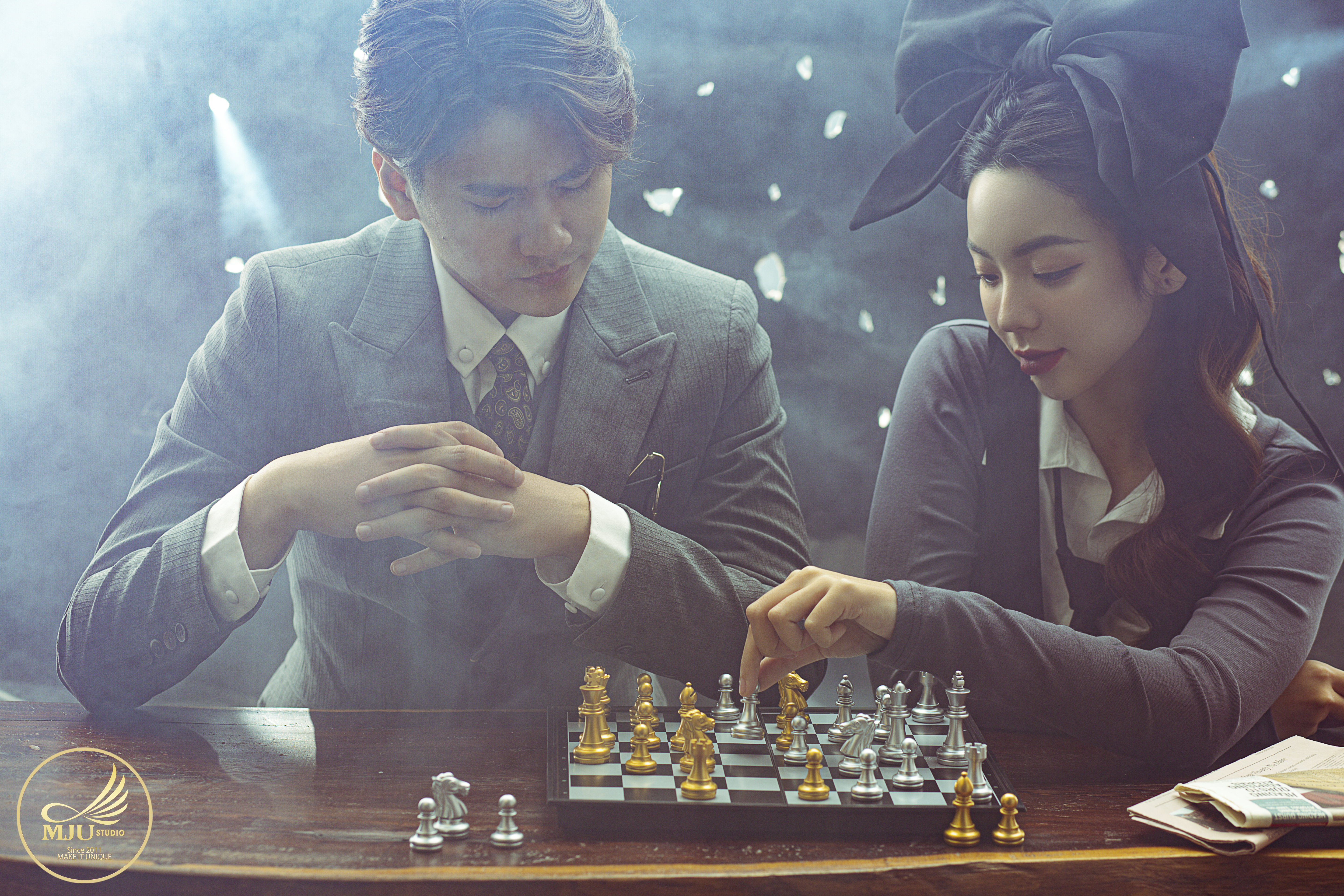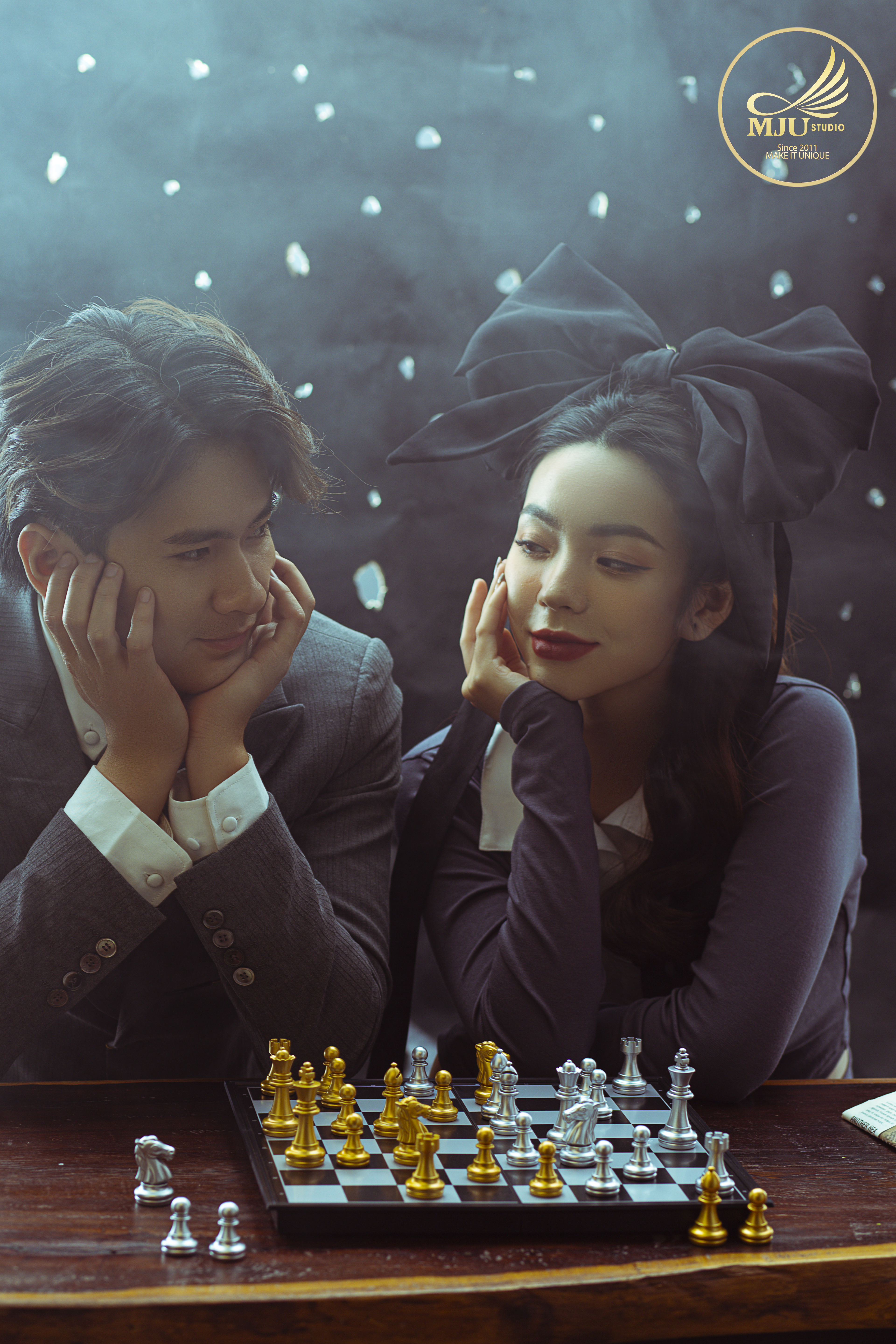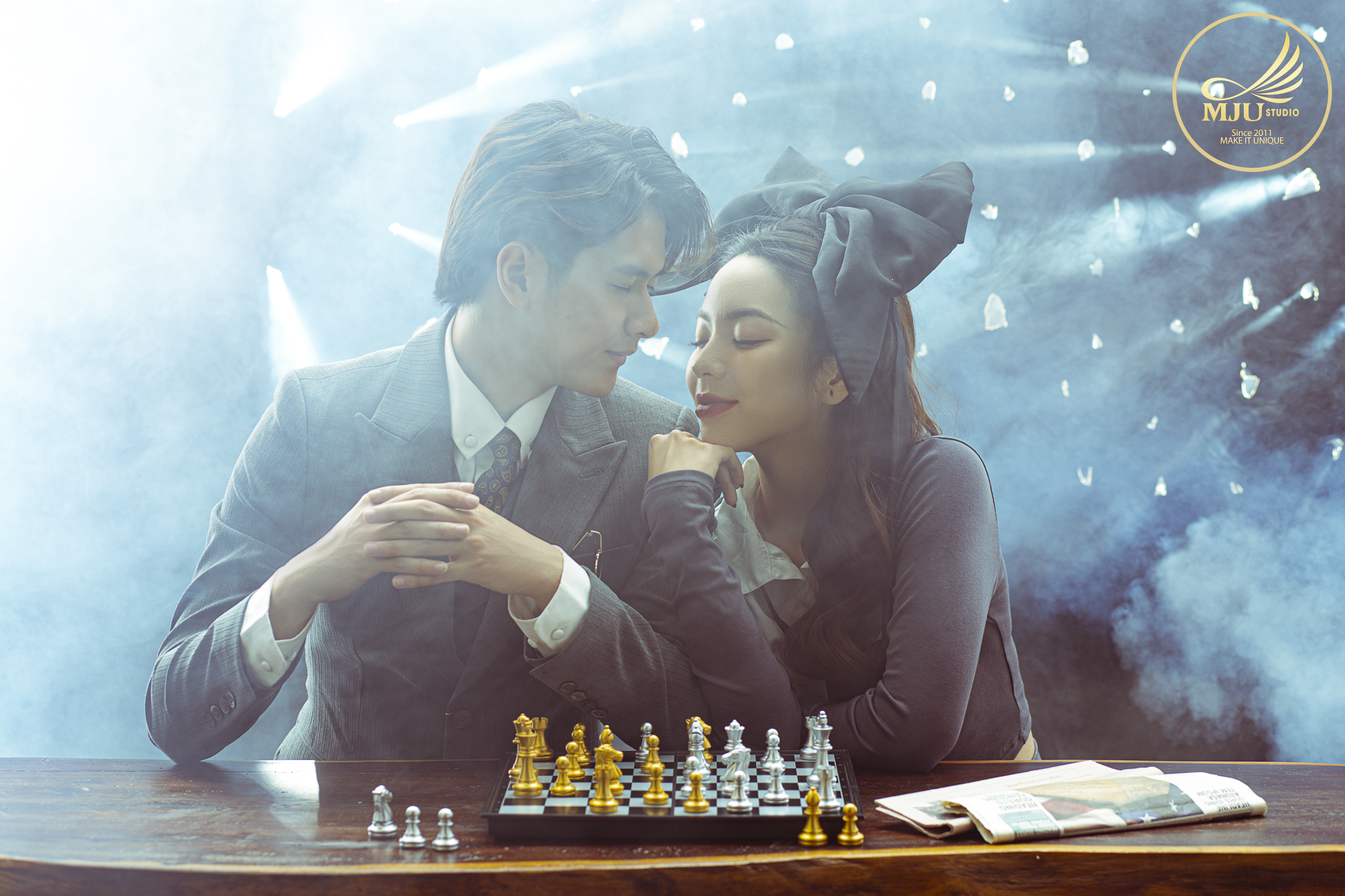 “THE GAMBIT” được thực hiện ngay tại studio indoor, với cách setup ánh sáng mới lạ cùng mix & match trang phục mang âm hưởng thời trang, cá tính nhưng vẫn thanh lịch, Mju Studio giúp cô dâu chú rể có những shoot hình cưới đẹp như những thước phim điện ảnh