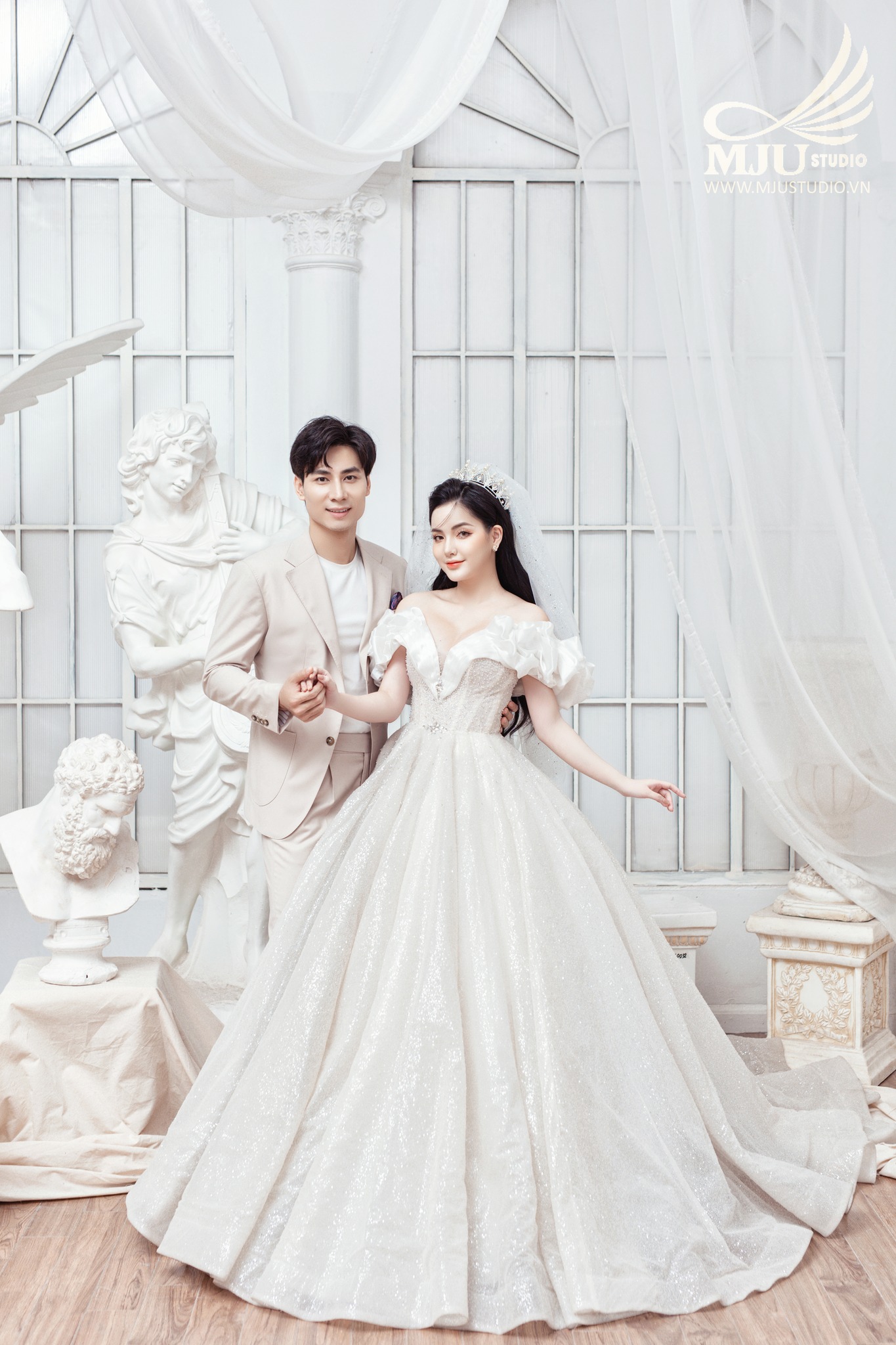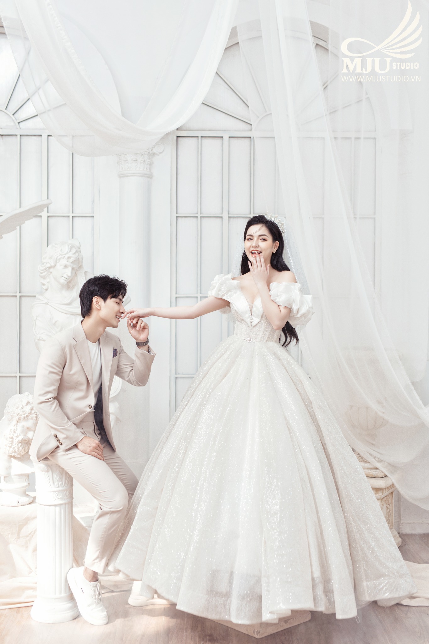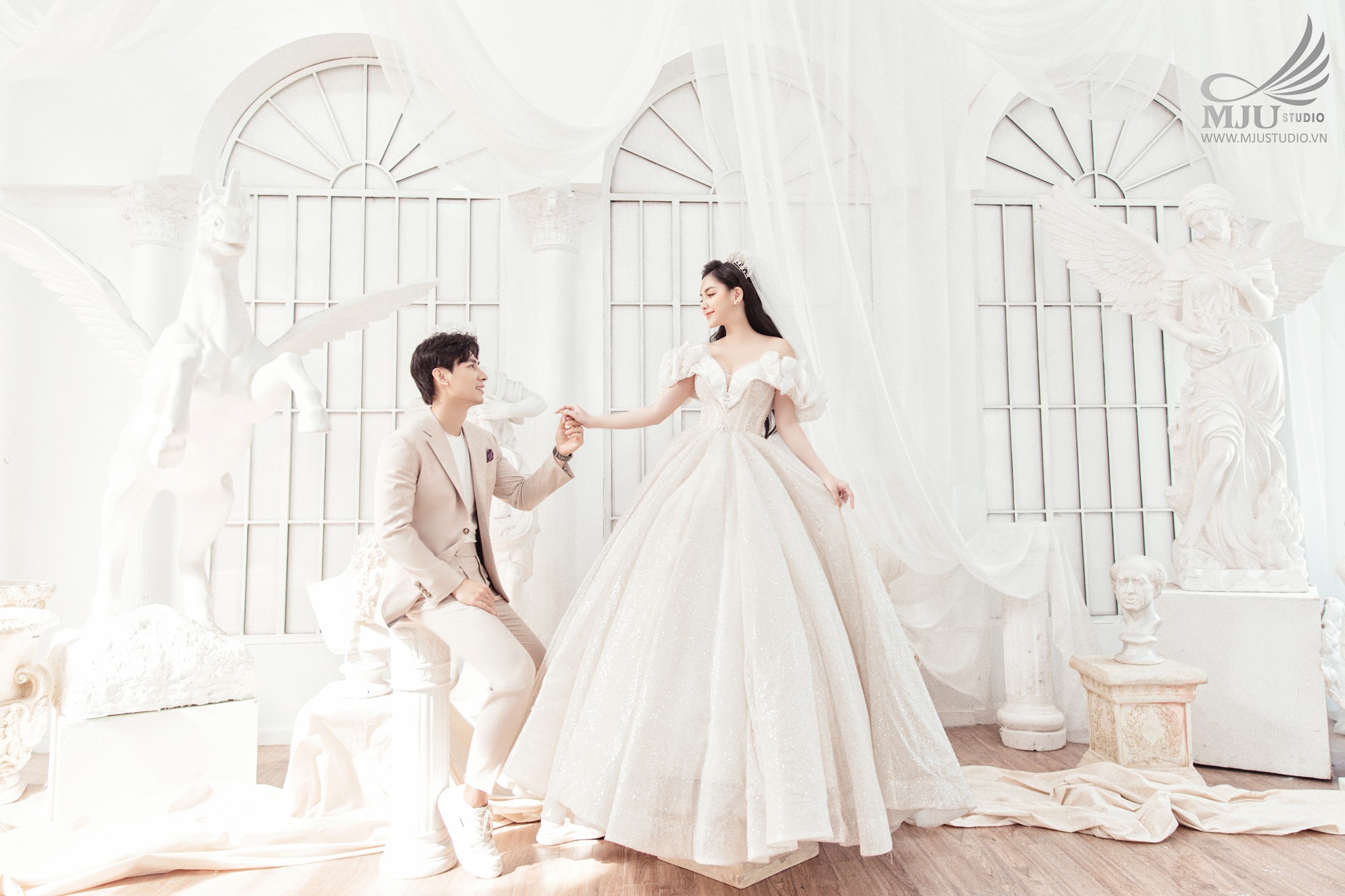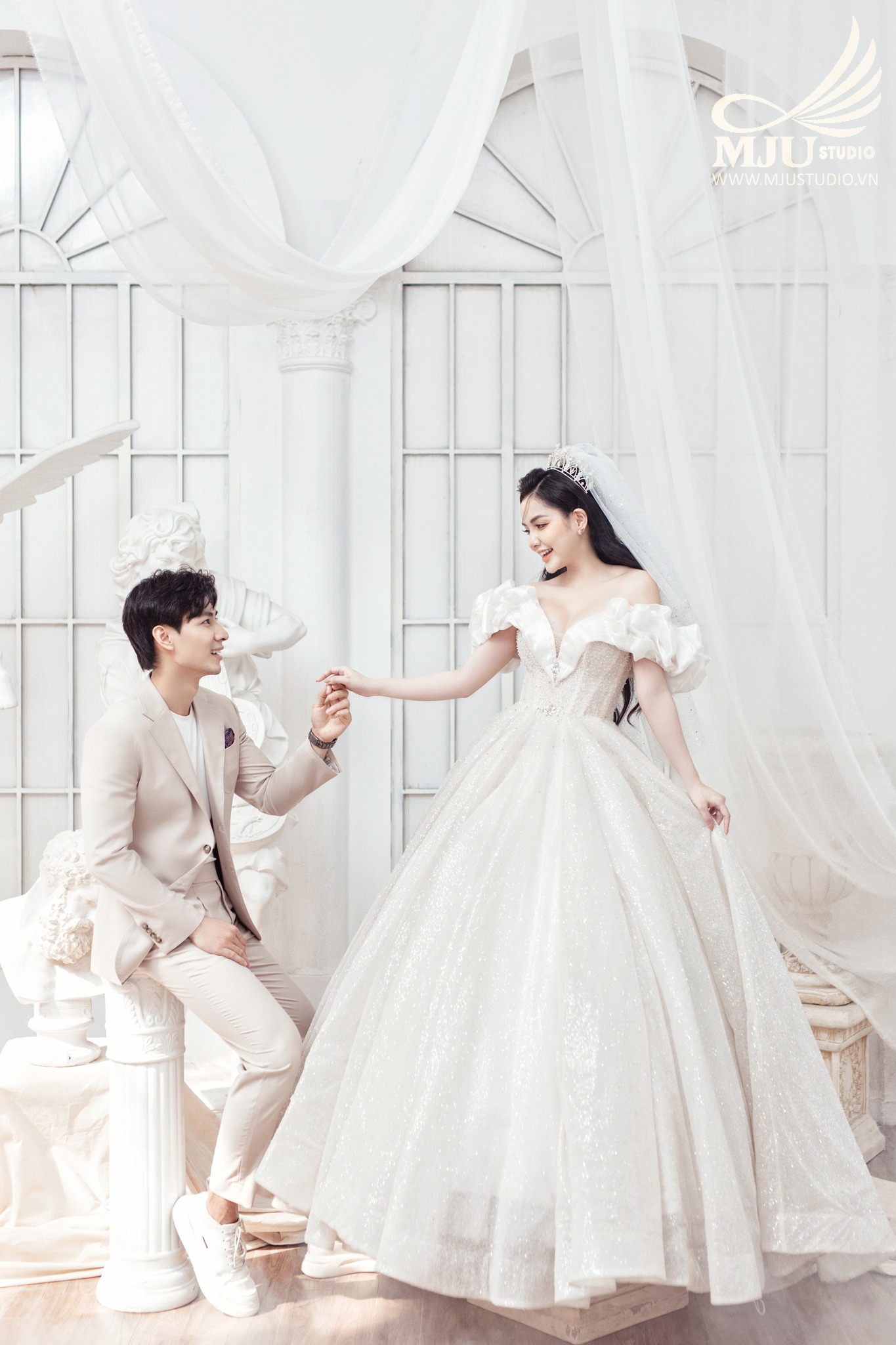 Một trong những địa điểm mà các cặp đôi nên lựa chọn nếu ngại di chuyển nhiều địa điểm đó chính là phim trường. Ảnh cưới phim trường của Mju Studio mang phong cách sang trọng, tinh tế kết hợp cùng màu sắc ảnh trong trẻo cùng tạo hình cô dâu chú rể lung linh, chú rể lịch lãm cùng suit, cô dâu lộng lẫy với váy cưới thiết kế của Fairytale Bridal…