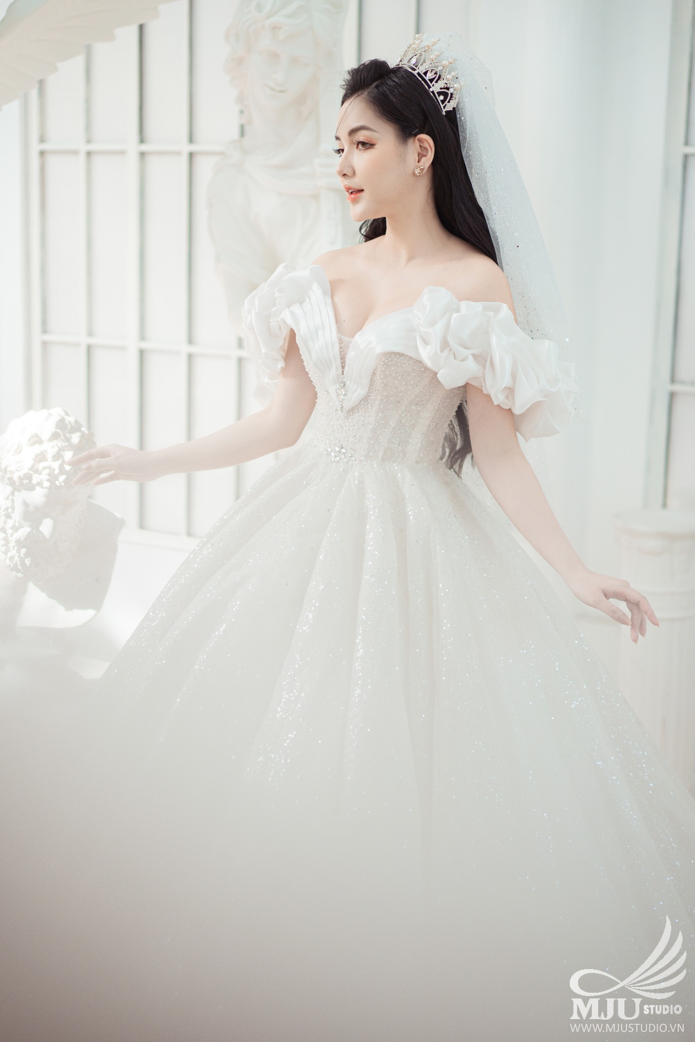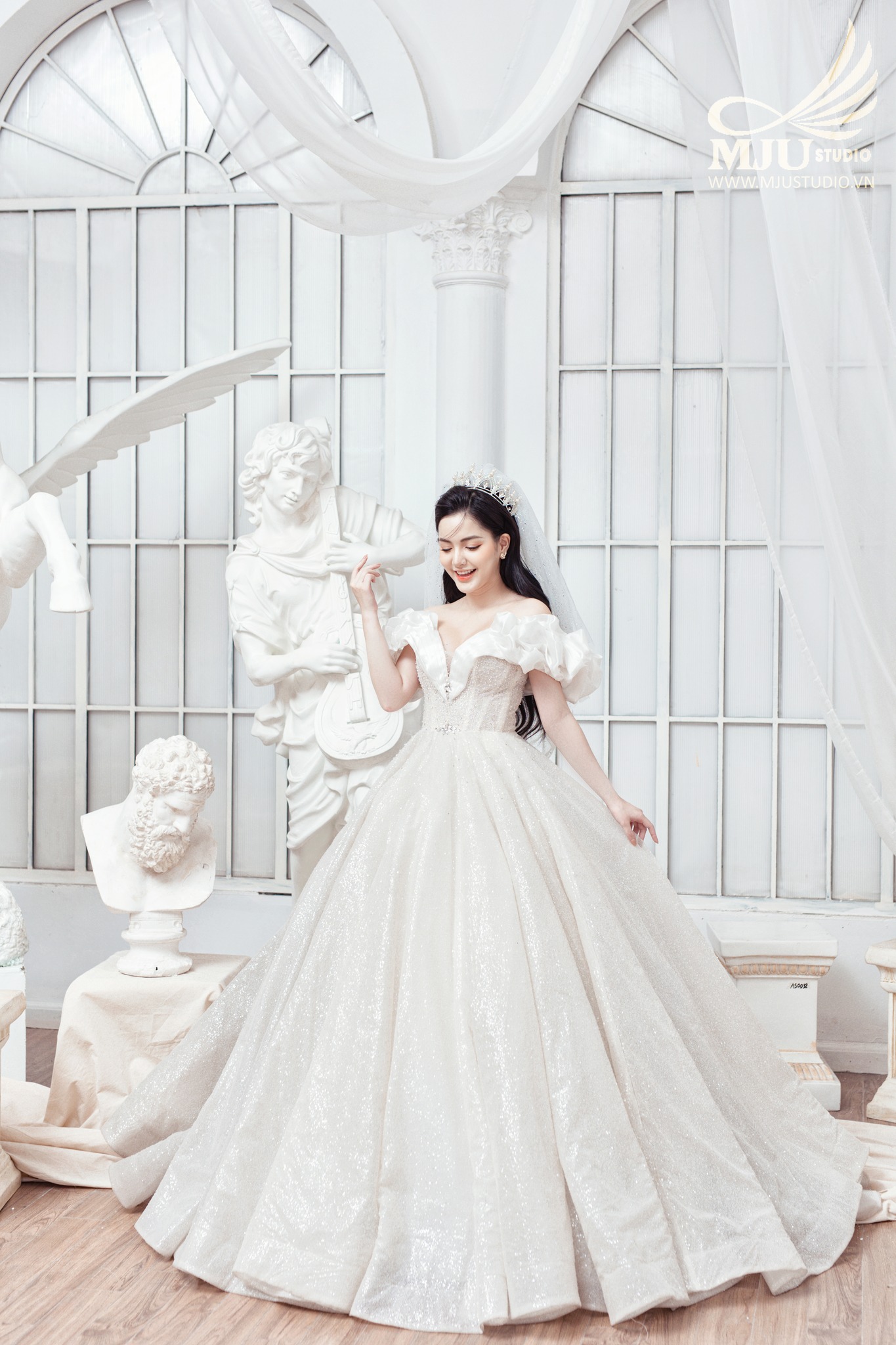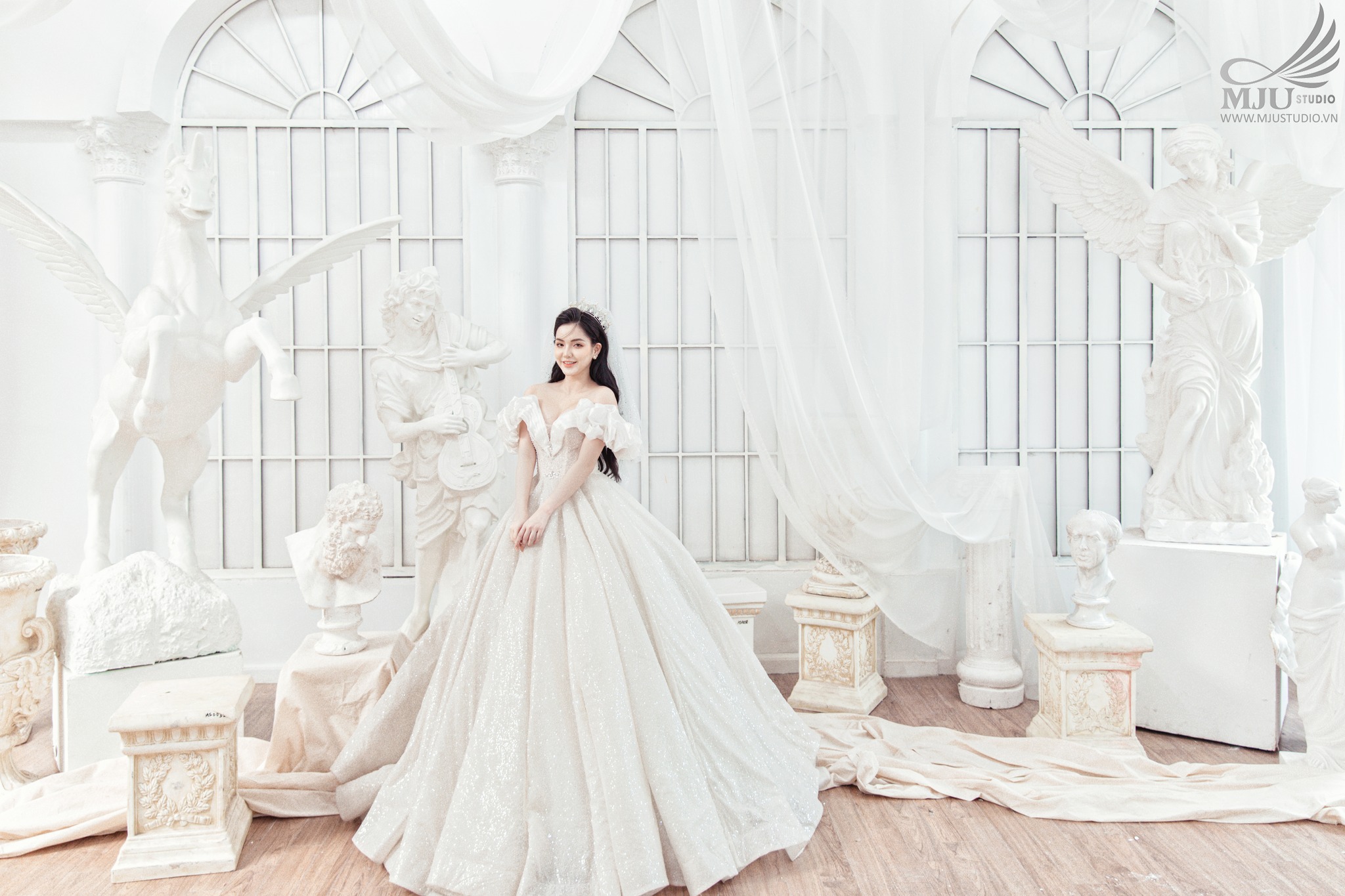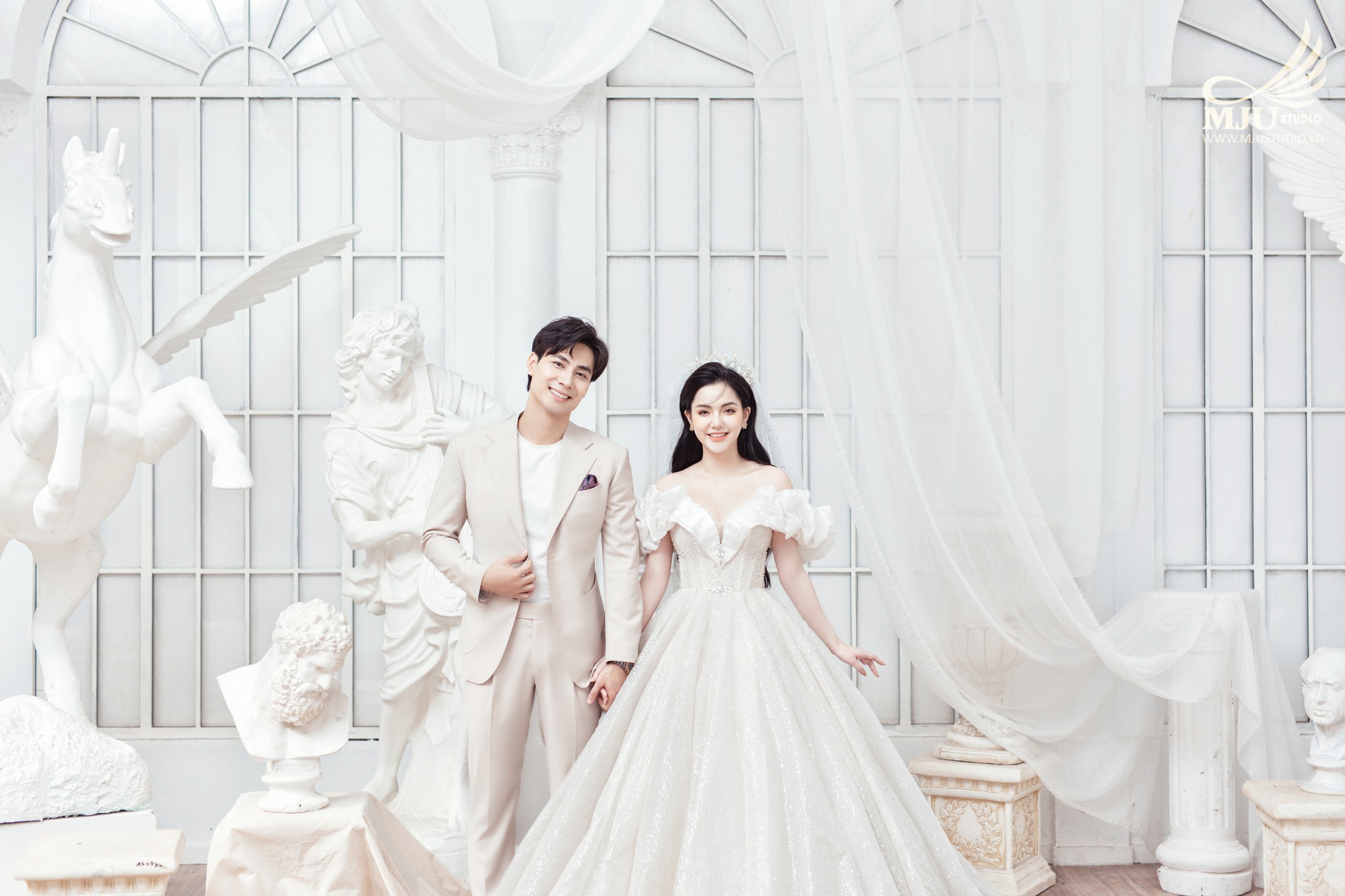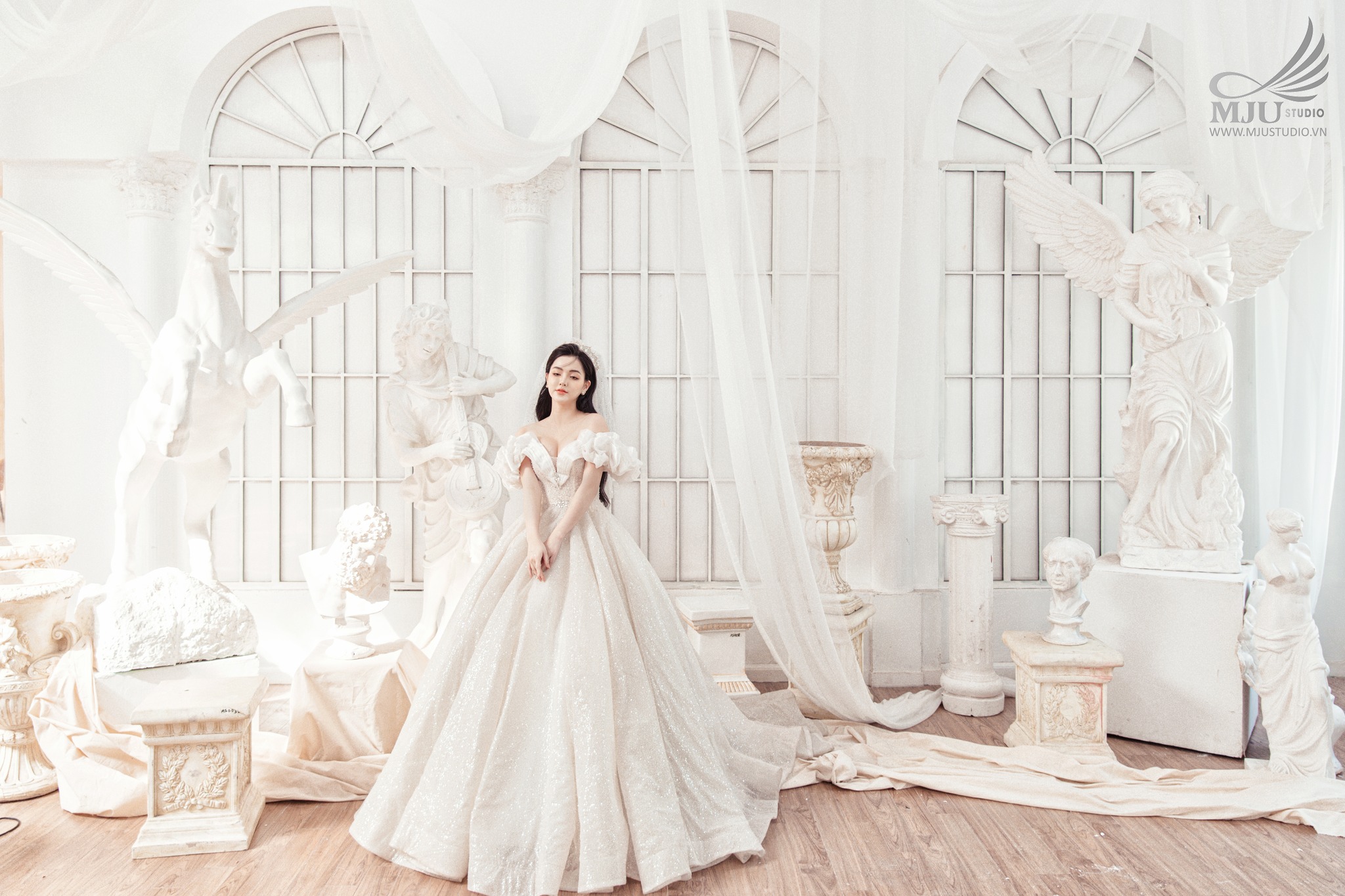 Một trong những địa điểm mà các cặp đôi nên lựa chọn nếu ngại di chuyển nhiều địa điểm đó chính là phim trường. Ảnh cưới phim trường của Mju Studio mang phong cách sang trọng, tinh tế kết hợp cùng màu sắc ảnh trong trẻo cùng tạo hình cô dâu chú rể lung linh, chú rể lịch lãm cùng suit, cô dâu lộng lẫy với váy cưới thiết kế của Fairytale Bridal…