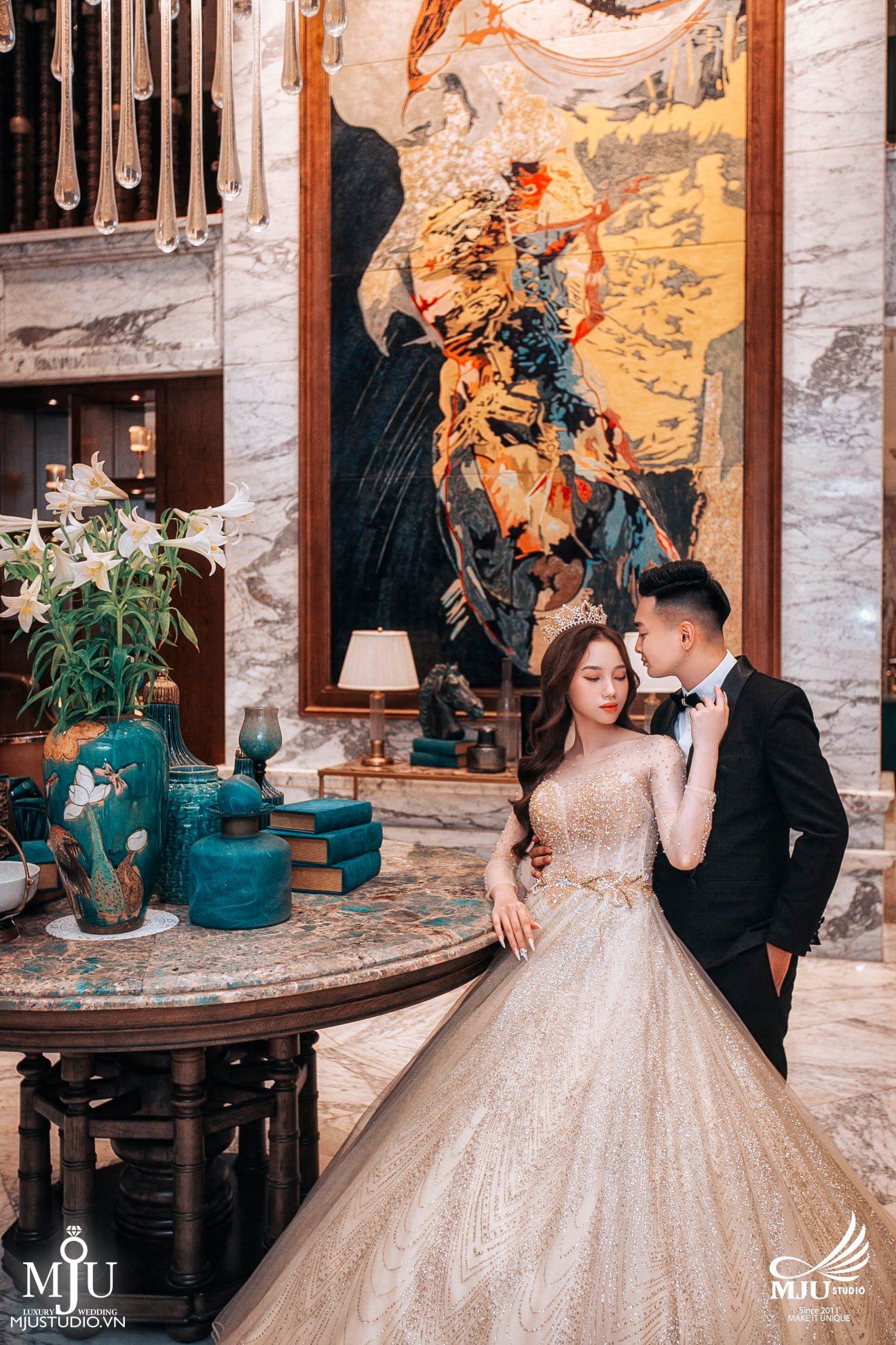 Với những cặp đôi yêu thích phong cách ảnh cưới sang trọng, ấn tượng mà không phải di chuyển ra ngoài quá nhiều, muốn có một không gian private thì chắc chắn không thể bỏ qua Luxury Concept được thực hiện tại các khách sạn 5 sao ở Hà Nội của Mju rồi