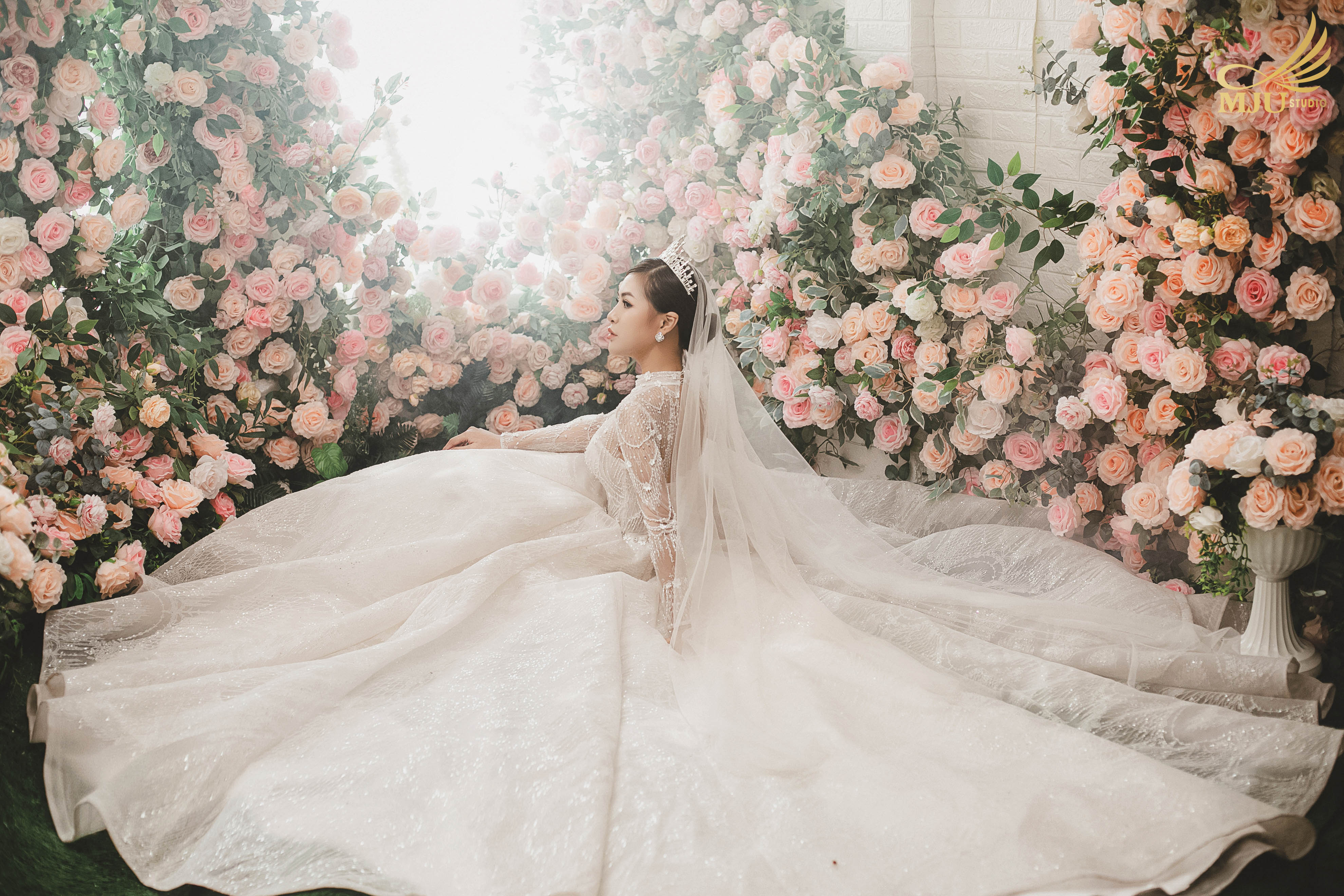 Với những dáng váy công chúa bồng xoè to, được sử dụng hoàn toàn chất liệu ngoại nhập kết hợp cùng kĩ thuật đính kết đá quý, pha lê cao cấp, mỗi chiếc váy của Fairytale Bridal đều được đánh giá cao về độ tinh xảo. Bên cạnh đó còn là kĩ thuật dựng form thân ngắn có nẹp eo corset tạo vòng eo con kiến “trong mơ” cho mỗi nàng dâu