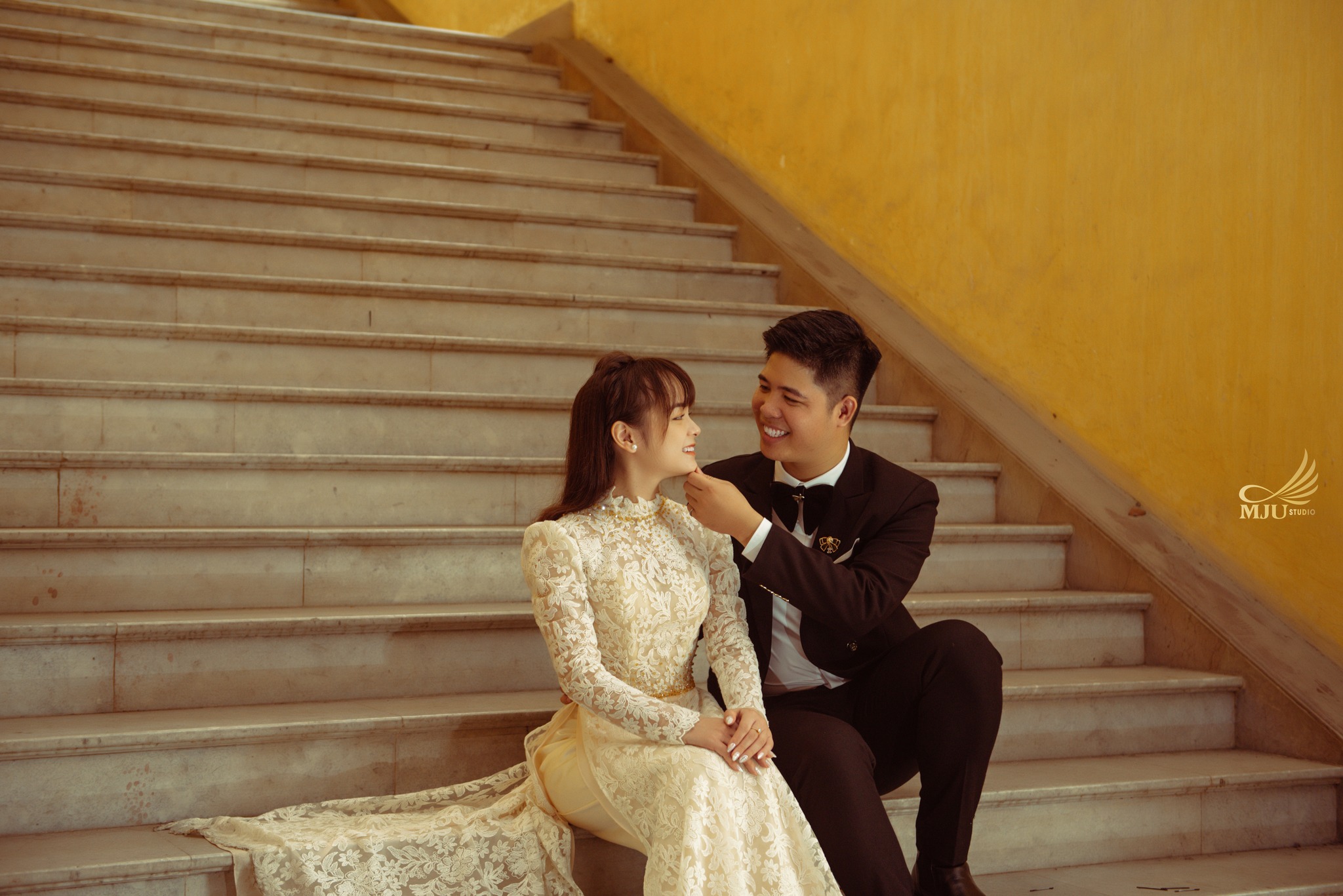 Mju Studio là Studio ảnh cưới nghệ thuật đầu tiên có nhãn hiệu váy cưới thiết kế cao cấp độc quyền Fairytale Bridal, Trưởng phòng thiết kế được tu nghiệp tại trường thiết kế danh tiếng Istituto Marangoni của Ý, xưởng sản xuất quy tụ những thợ thủ công tay nghề trên 10 năm với số lượng váy cưới mới và nhiều mẫu mã tinh tế, cô dâu thoả sức chọn lựa