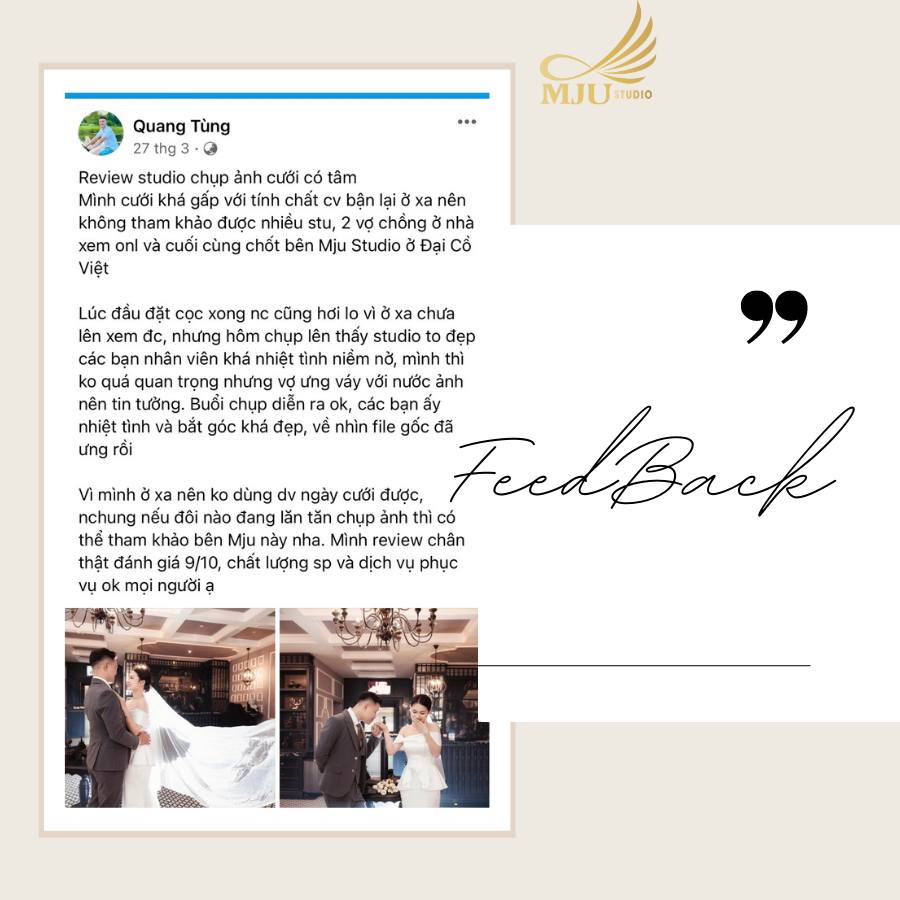 “Mju Studio được sáng lập và điều hành bởi Doanh nhân Đỗ Hương Ly và Nhiếp ảnh gia Đỗ Khắc Hiền (Hien Do) được biết đến là một studio chụp ảnh cưới đẹp với 12 năm kinh nghiệm trong lĩnh vực chụp hình cưới nghệ thuật. Mju Studio sở hữu đội ngũ ekip chuyên nghiệp quy tụ các chuyên viên đầu ngành cùng với khẩu hiệu “Make It Unique” Trong suốt hành trình “thập kỷ” Mju Studio luôn phát triển với phương châm sáng tạo, mang đến sự khác biệt, độc đáo trong từng bộ hình cưới. Mju Studio được khách hàng và các chuyên gia đánh giá là một trong những studio chụp anh cưới đẹp hàng đầu Việt Nam