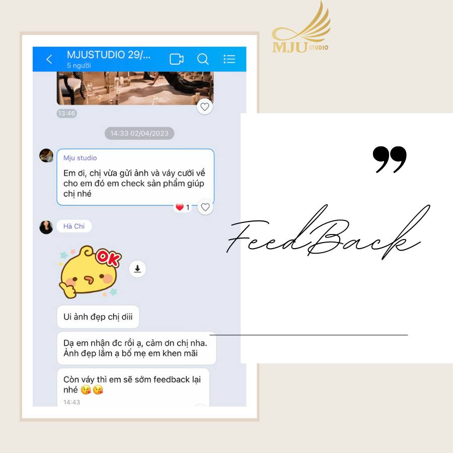 Mju Studio là Studio ảnh cưới nghệ thuật đầu tiên có nhãn hiệu váy cưới thiết kế cao cấp độc quyền Fairytale Bridal, Trưởng phòng thiết kế được tu nghiệp tại trường thiết kế danh tiếng Istituto Marangoni của Ý, xưởng sản xuất quy tụ những thợ thủ công tay nghề trên 10 năm với số lượng váy cưới mới và nhiều mẫu mã tinh tế, cô dâu thoả sức chọn lựa