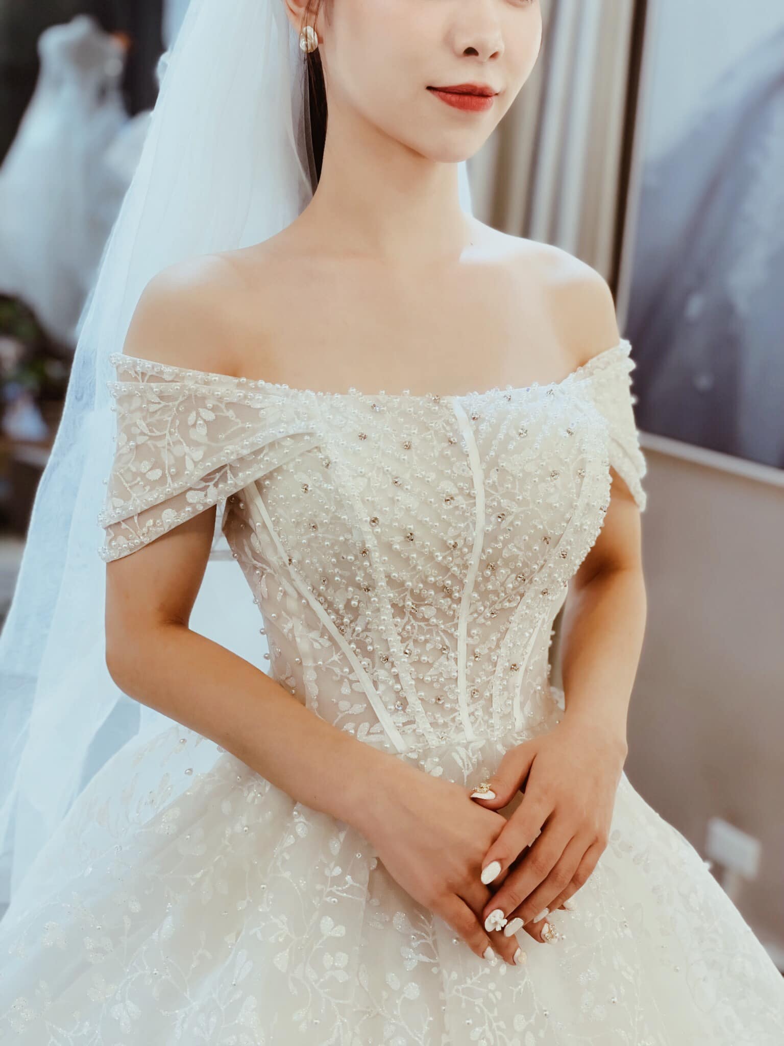 Với những dáng váy công chúa bồng xoè to, được sử dụng hoàn toàn chất liệu ngoại nhập kết hợp cùng kĩ thuật đính kết đá quý, pha lê cao cấp, mỗi chiếc váy của Fairytale Bridal đều được đánh giá cao về độ tinh xảo. Bên cạnh đó còn là kĩ thuật dựng form thân ngắn có nẹp eo corset tạo vòng eo con kiến “trong mơ” cho mỗi nàng dâu