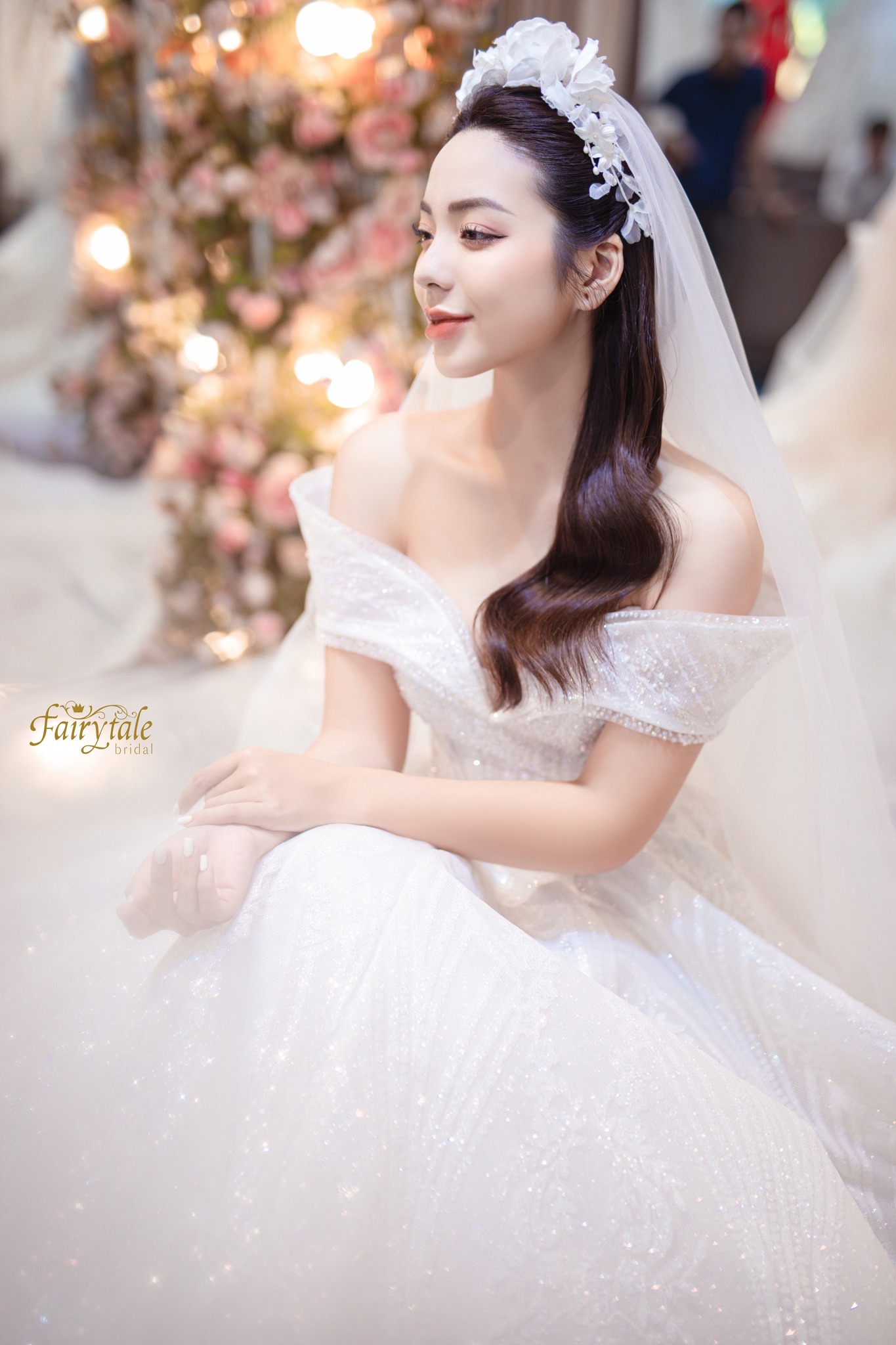 Với những dáng váy công chúa bồng xoè to, được sử dụng hoàn toàn chất liệu ngoại nhập kết hợp cùng kĩ thuật đính kết đá quý, pha lê cao cấp, mỗi chiếc váy của Fairytale Bridal đều được đánh giá cao về độ tinh xảo. Bên cạnh đó còn là kĩ thuật dựng form thân ngắn có nẹp eo corset tạo vòng eo con kiến “trong mơ” cho mỗi nàng dâu