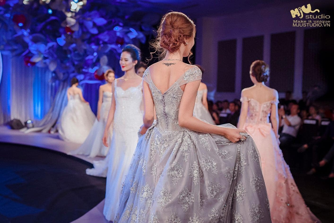 Với những dáng váy công chúa bồng xoè to, được sử dụng hoàn toàn chất liệu ngoại nhập kết hợp cùng kĩ thuật đính kết đá quý, pha lê cao cấp, mỗi chiếc váy của Fairytale Bridal đều được đánh giá cao về độ tinh xảo. Bên cạnh đó còn là kĩ thuật dựng form thân ngắn có nẹp eo corset tạo vòng eo con kiến “trong mơ” cho mỗi nàng dâu