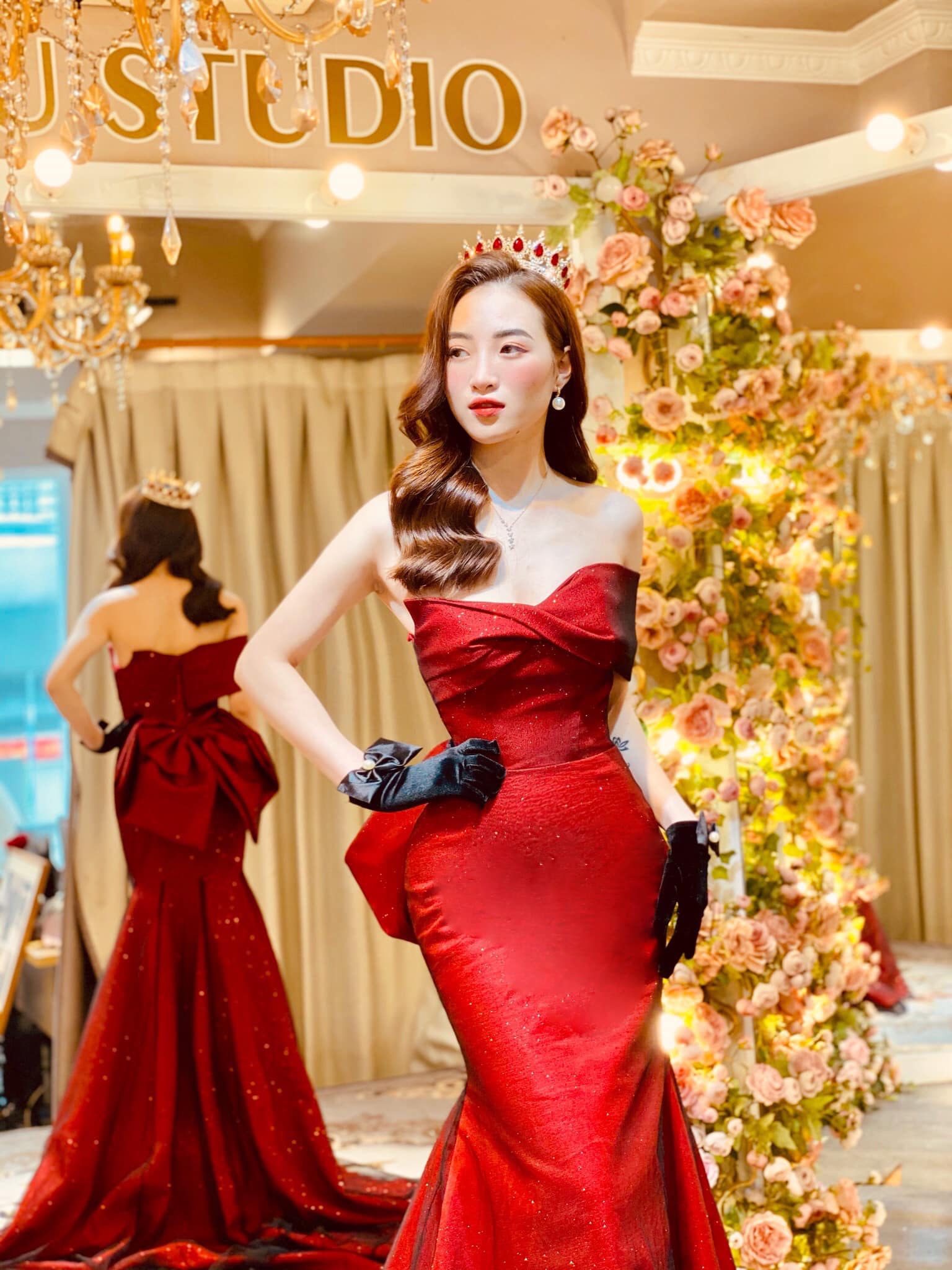Với những dáng váy công chúa bồng xoè to, được sử dụng hoàn toàn chất liệu ngoại nhập kết hợp cùng kĩ thuật đính kết đá quý, pha lê cao cấp, mỗi chiếc váy của Fairytale Bridal đều được đánh giá cao về độ tinh xảo. Bên cạnh đó còn là kĩ thuật dựng form thân ngắn có nẹp eo corset tạo vòng eo con kiến “trong mơ” cho mỗi nàng dâu