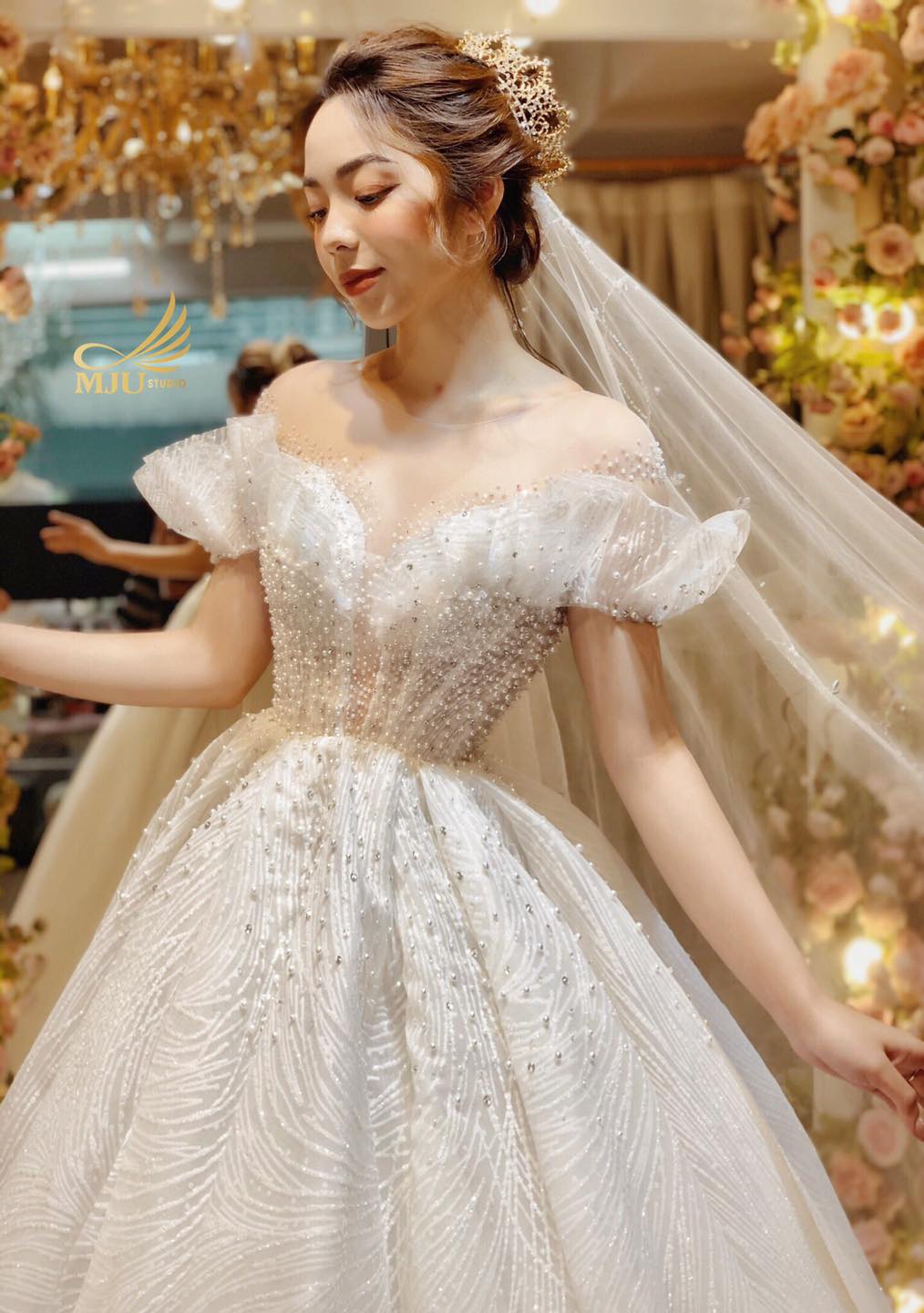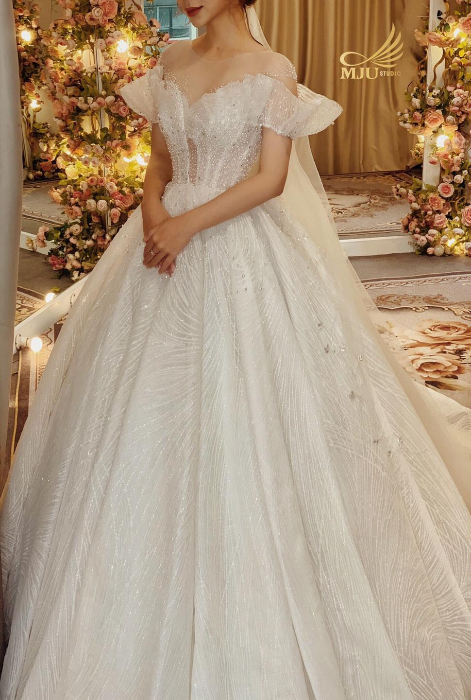 VÁY CƯỚI TRỄ VAI THIẾT KẾ CAO CẤP FAIRYTALE BRIDAL / MJUSTUDIO